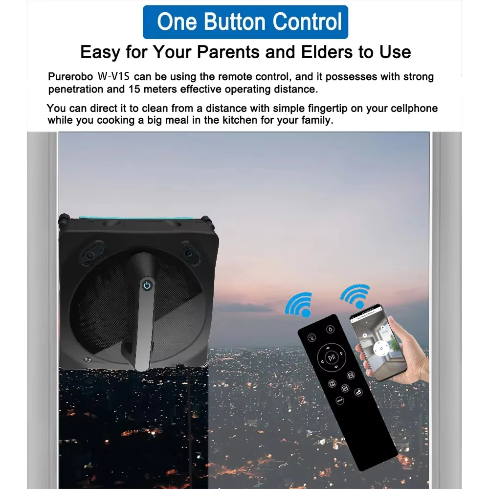 Robot Window Cleaner Purerobo W-V1S With Vibration&Dual Water Spray,High Vacuum Suction,Home Glass Cleaning Window Cleaner Robot